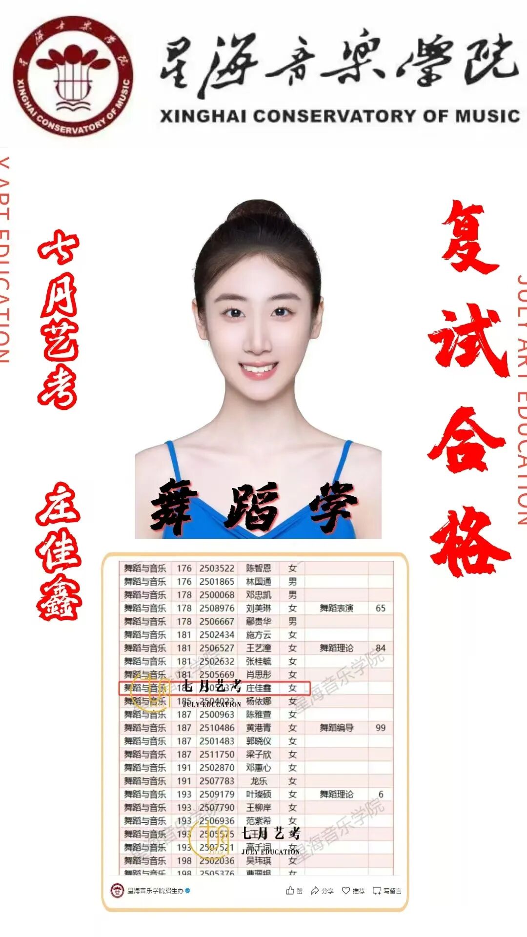 25届舞蹈专业录取榜!