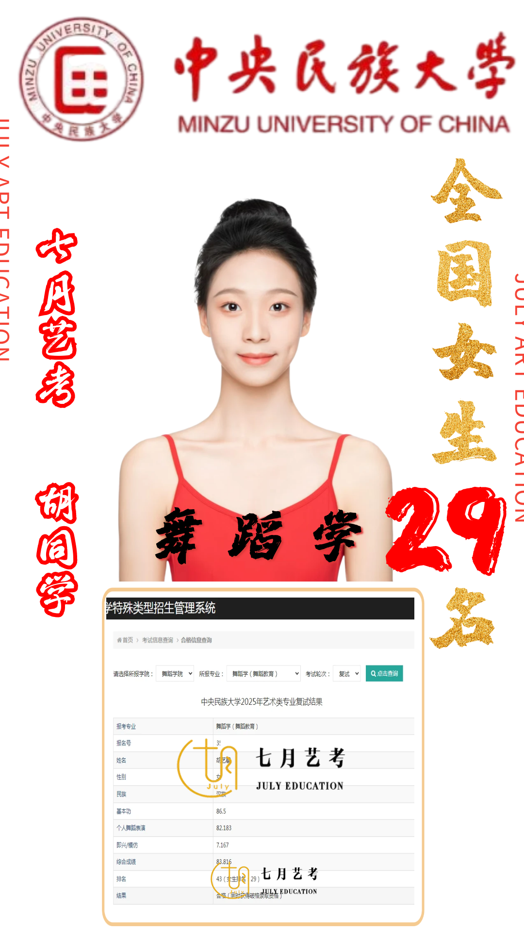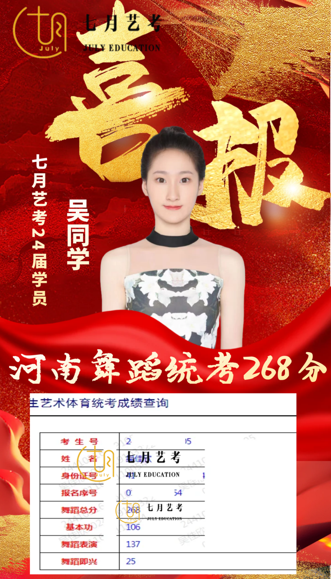 七月艺考专注于舞蹈艺术升学十五年,全国设有北京、云南、郑州三省直营校区,郑州校区连续三年保持普高生民大录取*。
